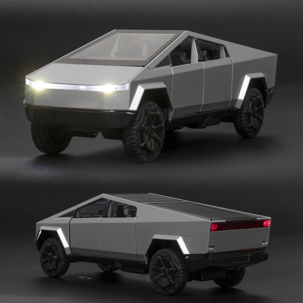 Precision-crafted Tesla Cybertruck replica with authentic details, opening doors, and pull-back action. Perfect for collectors and kids alike.